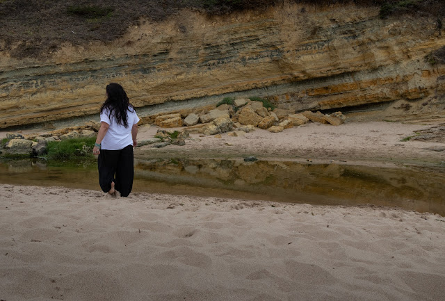 Neste final de dia, o tempo estava perfeito, como eu gosto. Temperatura amena, encoberto, aquela "cacimba" típica do mar, e as nuvens por cima da serra. Este é o quadro preferido da minha infância e adolescência, e dos meus sonhos enquanto adulta. Este recanto final da praia, junto à ribeira, é agradável e dá sempre umas fotos fantásticas. Ele ficou na esplanada do bar, ela veio comigo seduzida pelas fotos que lhe poderia tirar, não pelo passeio em si. Tenho de vir com calma, sozinha, porque apenas sozinha consigo usufruir e fotografar como gosto.